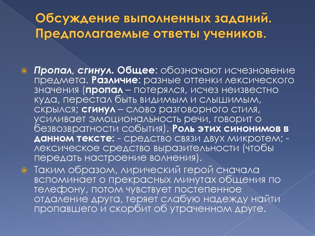значения (пропал – потерялся, исчез неизвестно