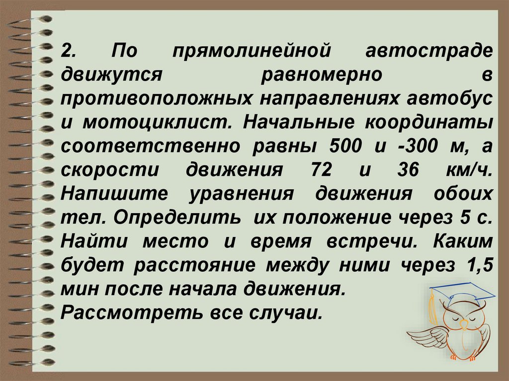 1. Автомобиль удаляется отмоста, двигаясь равномерно и