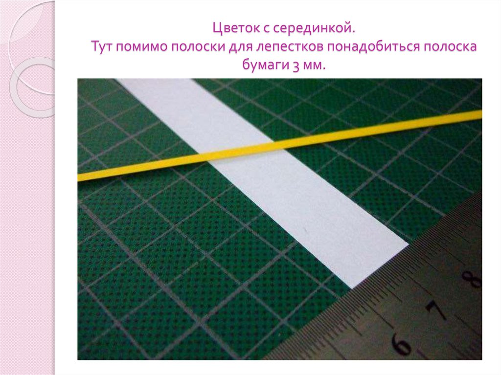 Цветок с серединкой.Тут помимо полоски для лепестков понадобиться полоска
