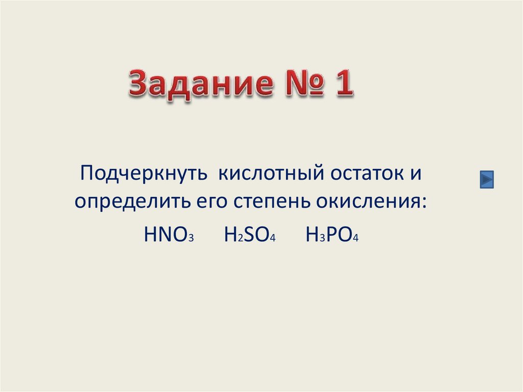 Подчеркнуть кислотный остаток иопределить его степень окисления: