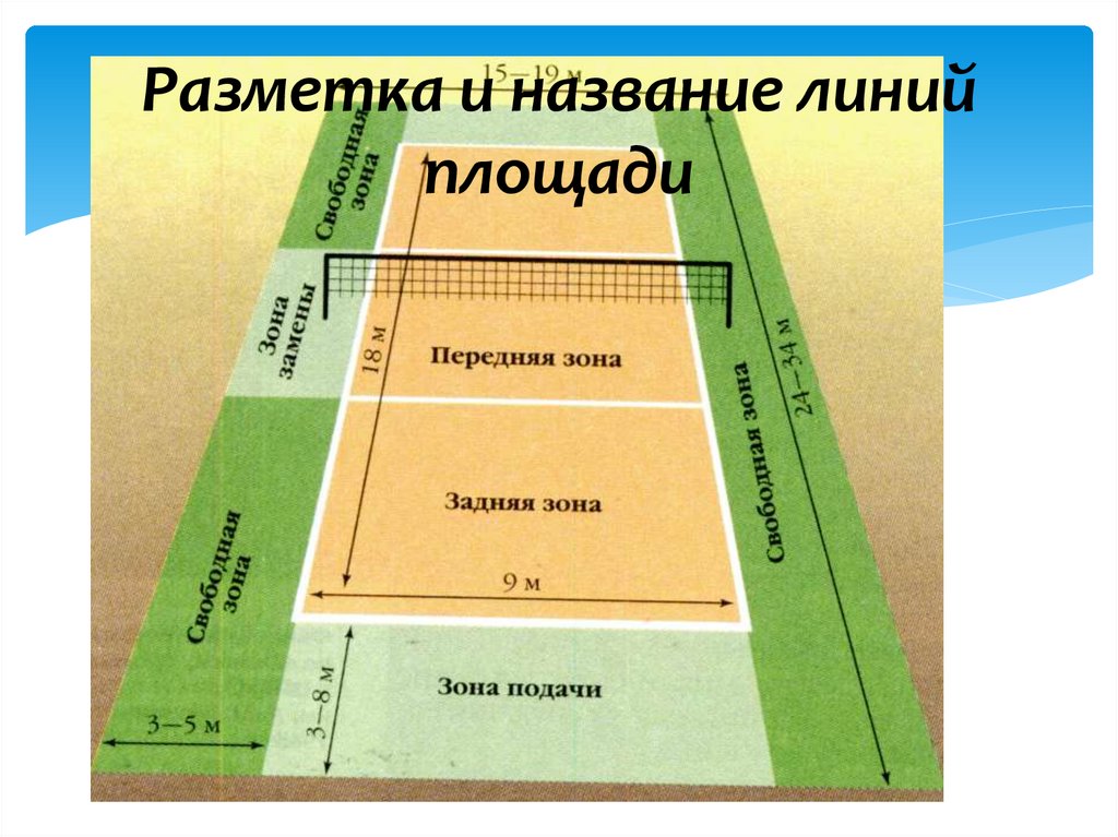 Две боковые и две лицевые линии ограничивают игровуюплощадку. Боковые и лицевые линии входят в размеры