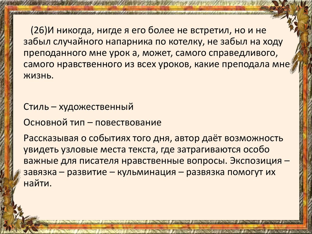 (26)И никогда, нигде я его более не встретил, но и незабыл случайного напарника по котелку, не забыл на ходу
