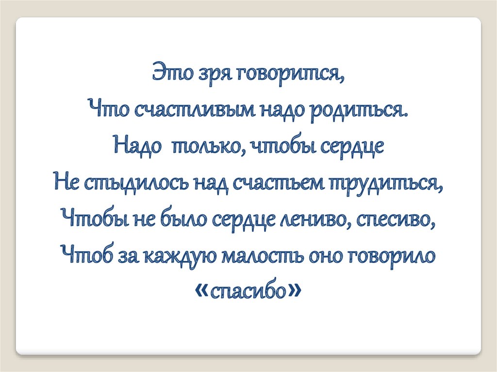Это зря говорится,Что счастливым надо родиться.