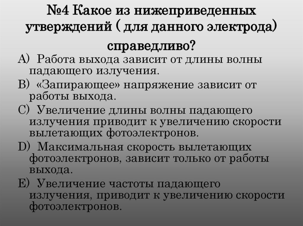 №4 Какое из нижеприведенныхутверждений ( для данного электрода)