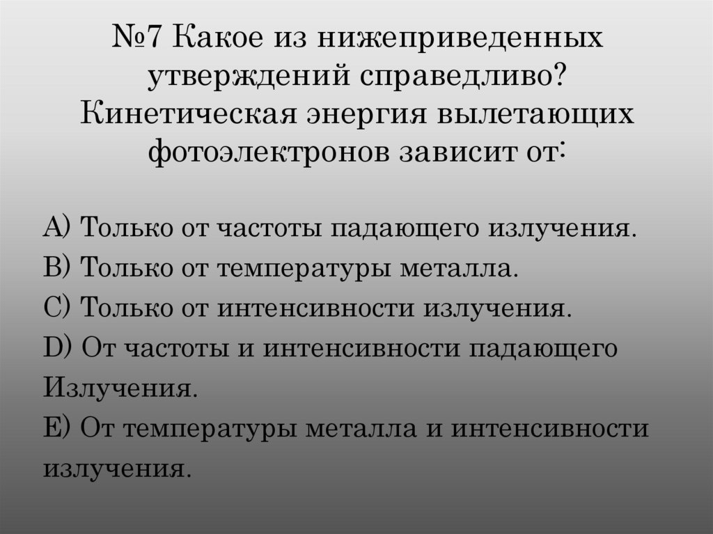 №7 Какое из нижеприведенныхутверждений справедливо?