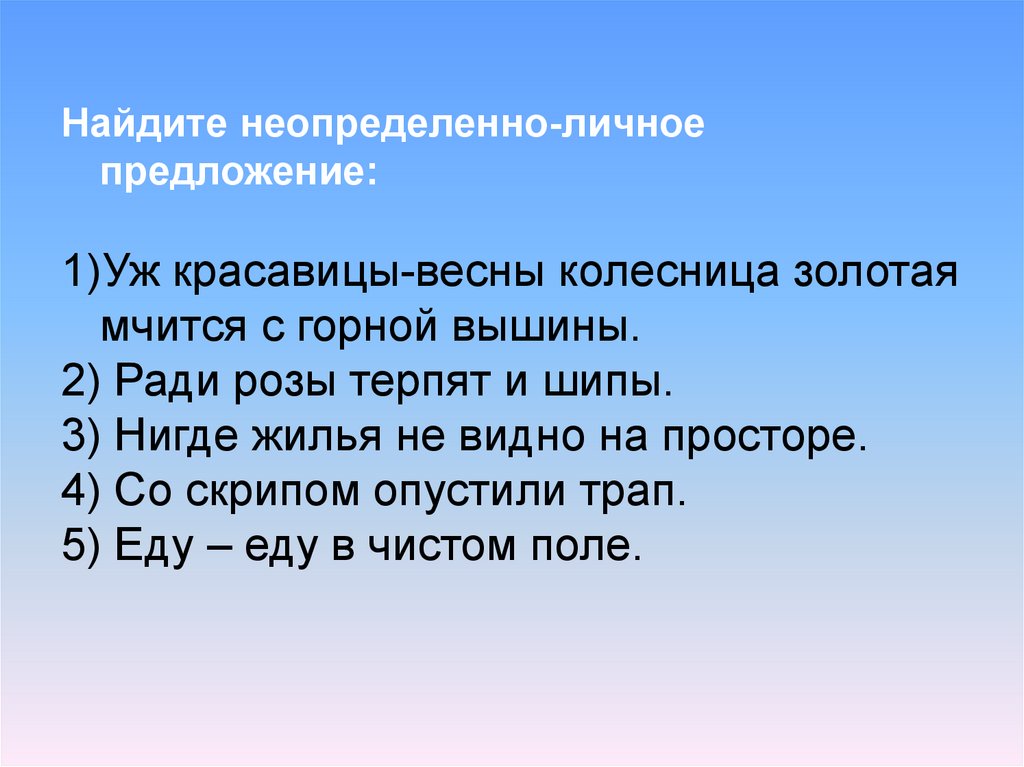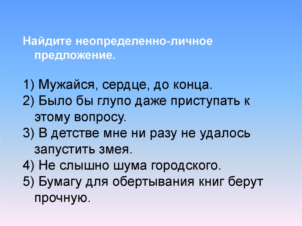 Найдите неопределенно-личноепредложение: