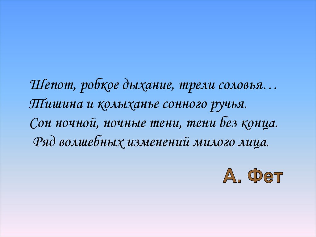 Шепот, робкое дыхание, трели соловья…Тишина и колыханье сонного ручья.