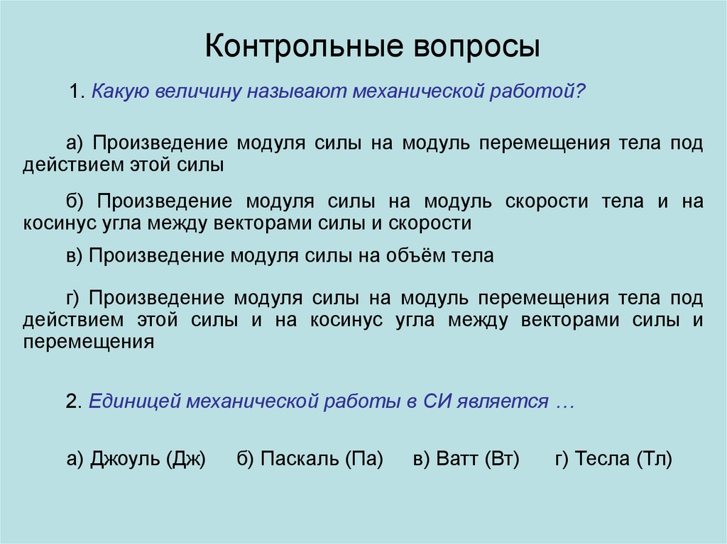 Контрольные вопросы1. Какую величину называют механической работой?