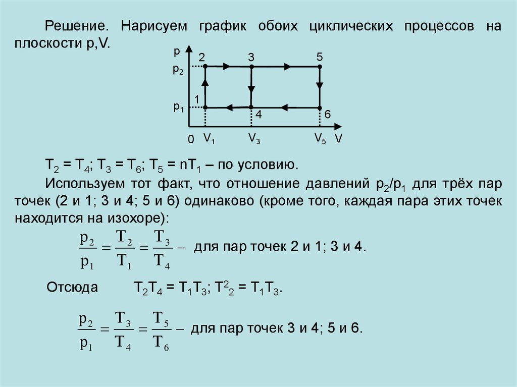 Решение. Нарисуем график обоих циклических процессов наплоскости р,V.