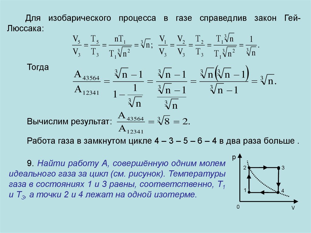 8. Найти отношение работ, совершаемых