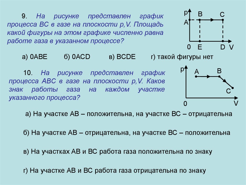 9. На рисунке представлен графикпроцесса BC в газе на плоскости р,V. Площадь