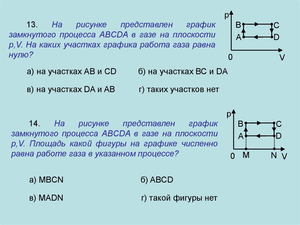 р,V. На каких участках графика работа газа равна