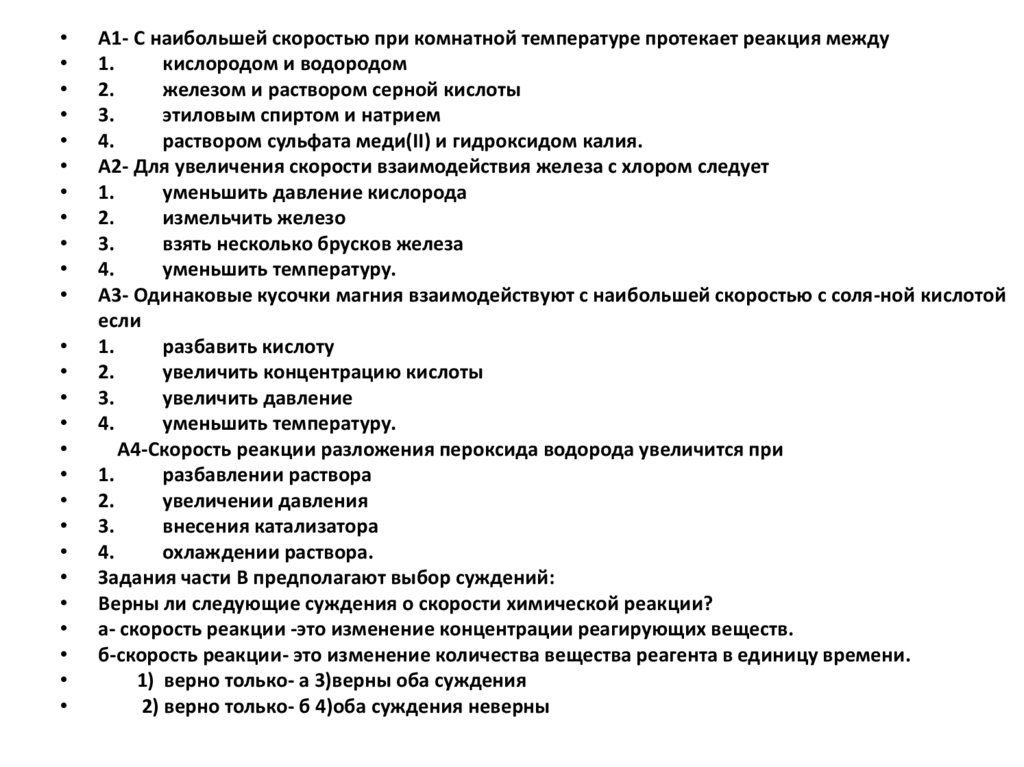 А3- Одинаковые кусочки магния взаимодействуют с наибольшей скоростью с соля-ной кислотой