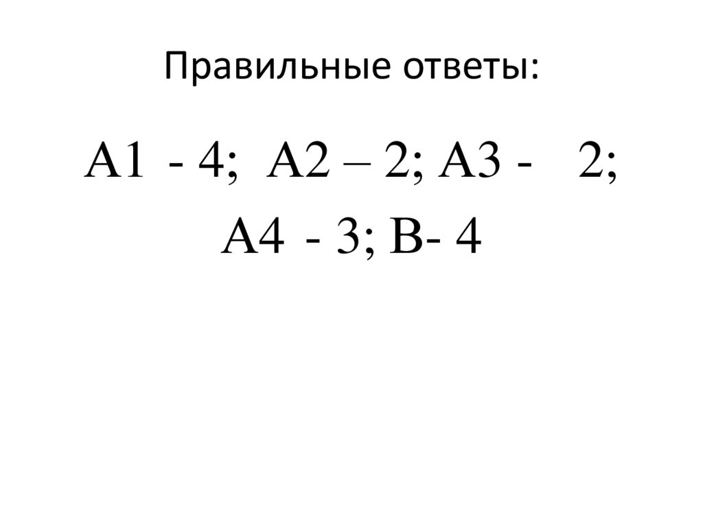 Правильные ответы:А1 - 4; А2 – 2; А3 - 2;