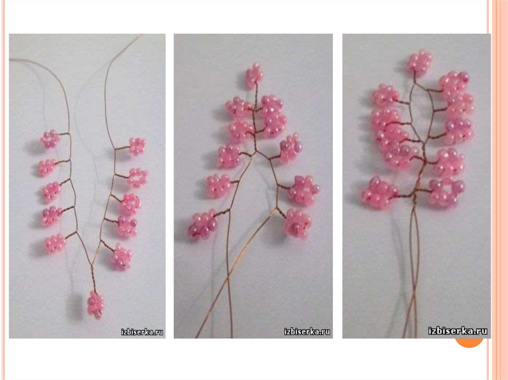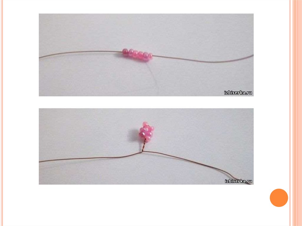 2) Сымға жеті бисер тігу және сым соңынан 5см. қалдырып бұрау