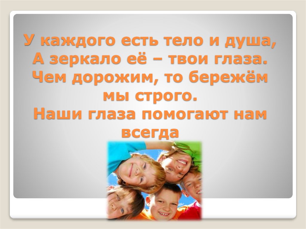 У каждого есть тело и душа,А зеркало её – твои глаза.