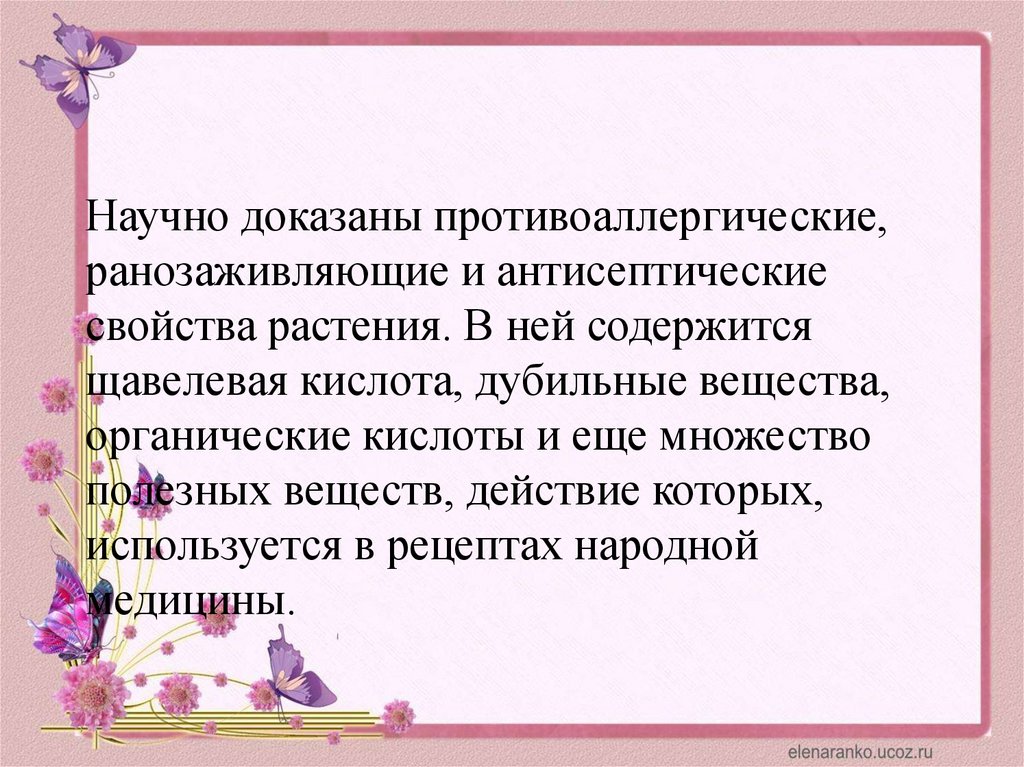 Научно доказаны противоаллергические,ранозаживляющие и антисептические