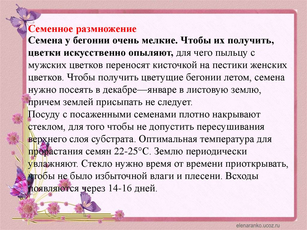 Семенное размножениеСемена у бегонии очень мелкие. Чтобы их получить,