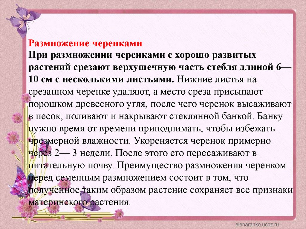 Размножение черенкамиПри размножении черенками с хорошо развитых