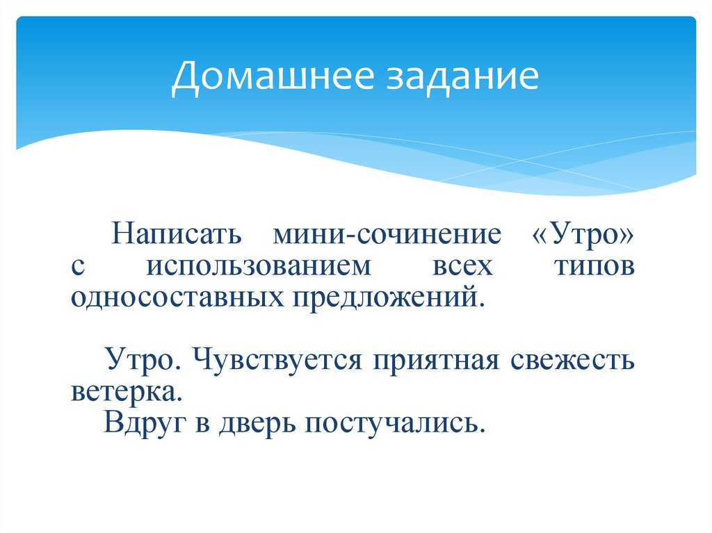 Домашнее заданиеНаписать мини-сочинение «Утро»