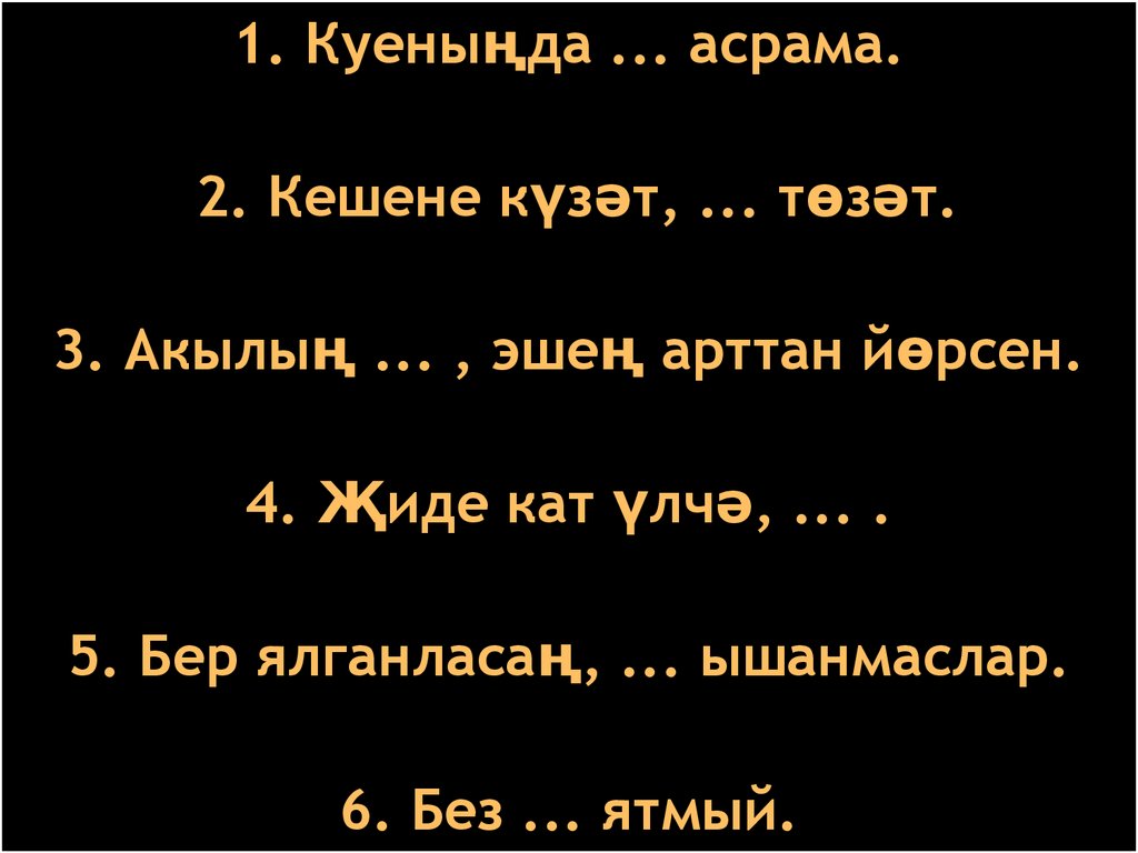 3. Акылыңда ... асрама. ... , эшеңда ... асрама. арттан йөзәт.рсен.