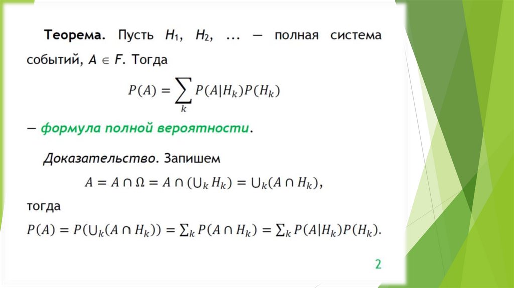 Условная вероятность. Правило умножения вероятностей. Формула полной вероятности. Формула Байеса