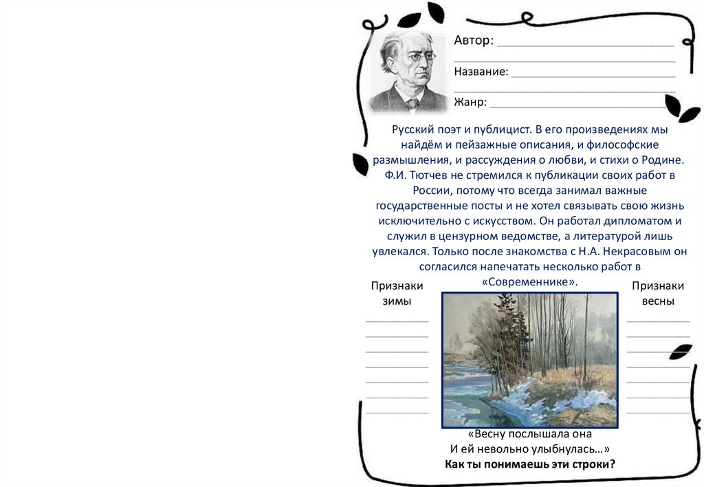 Ф.И. Тютчев – признанный мастер пейзажной лирики