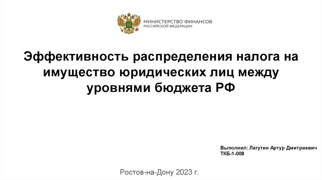 Эффективность распределения налога на имущество юридических лиц между уровнями бюджета РФ