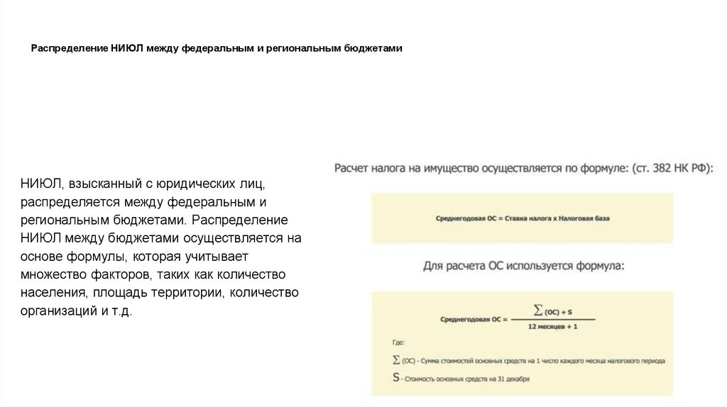 Распределение НИЮЛ между федеральным и региональным бюджетамиНИЮЛ, взысканный с юридических лиц,