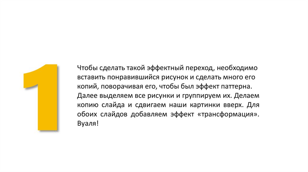 Чтобы сделать такой эффектный переход, необходимовставить понравившийся рисунок и сделать много его