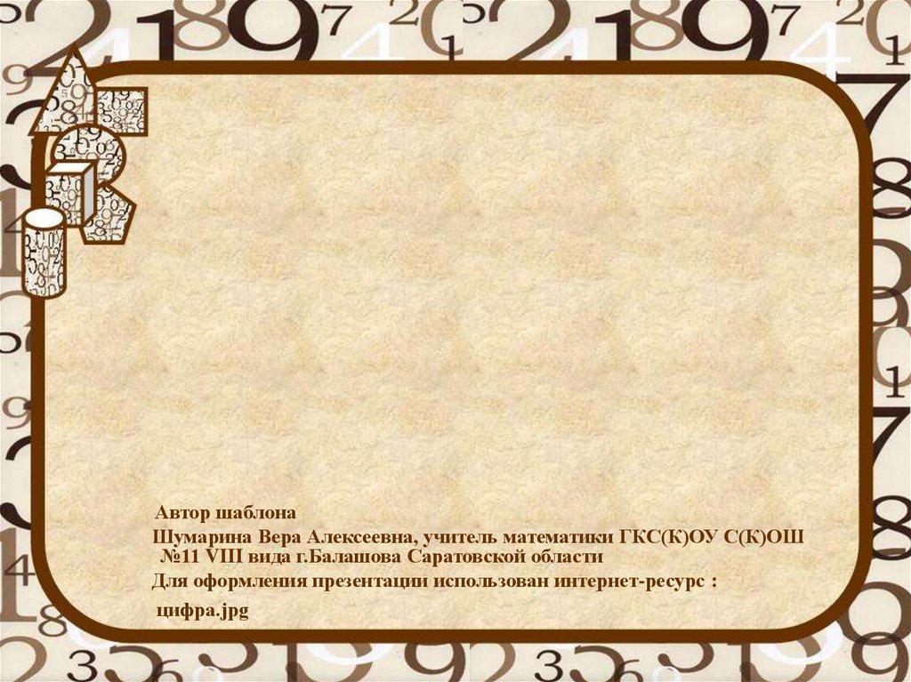 Автор шаблонаШумарина Вера Алексеевна, учитель математики ГКС(К)ОУ С(К)ОШ