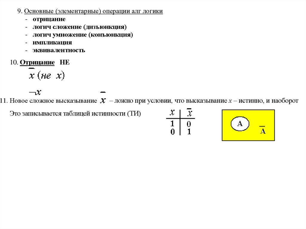 – ложно при условии, что высказывание х – истинно, и наоборот