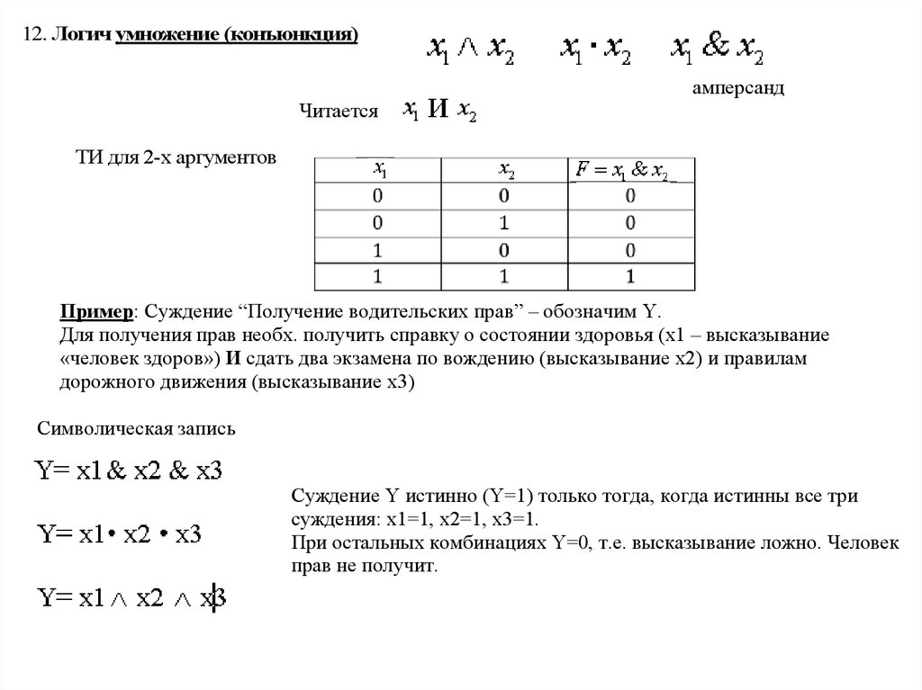 «человек здоров») И сдать два экзамена по вождению (высказывание х2) и правилам