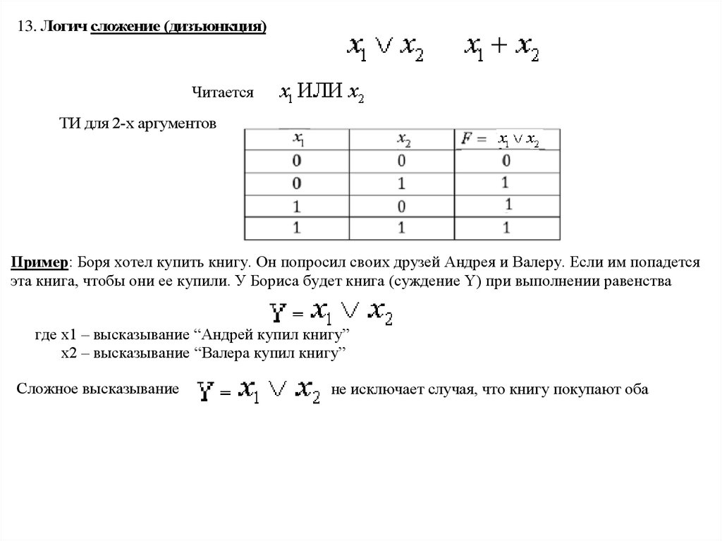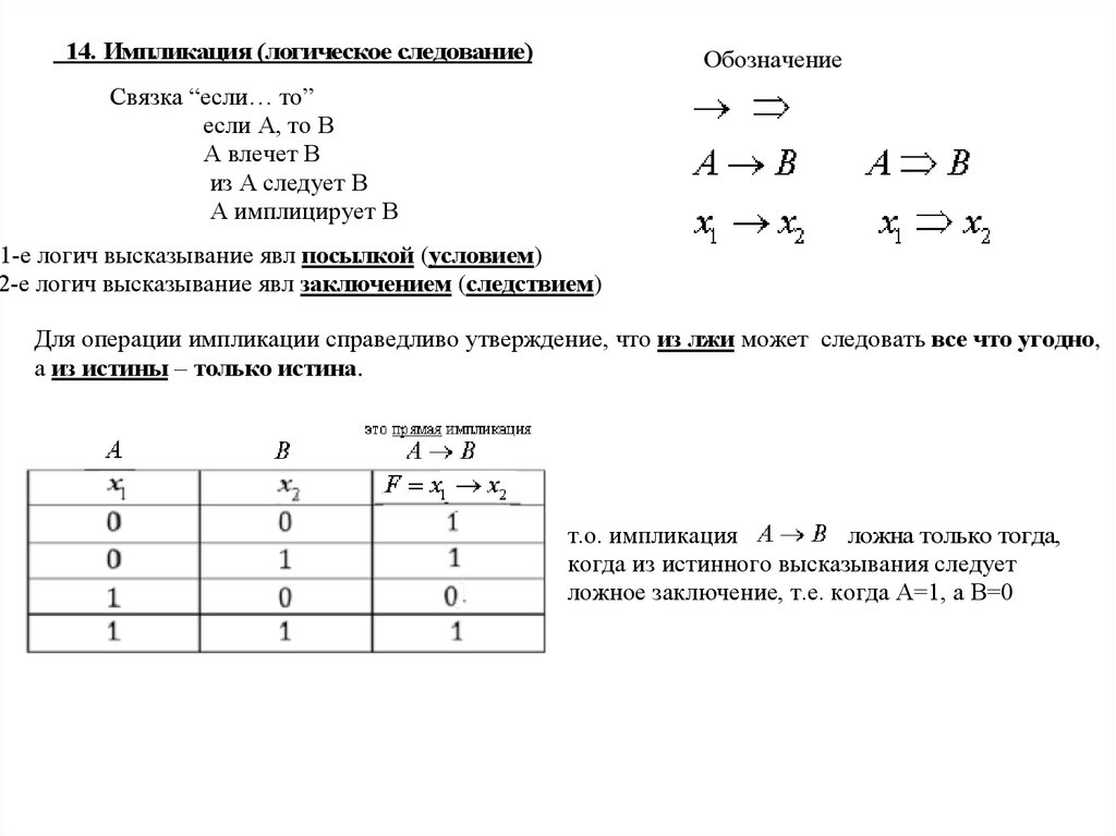 5. Высказывания имеют значения «Истина» (обознач. 1) и «Ложь» (обозн. 0).