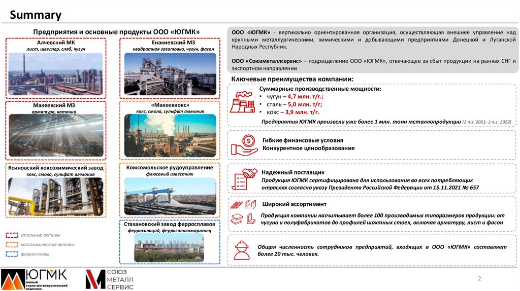 SummaryПредприятия и основные продукты ООО «ЮГМК»