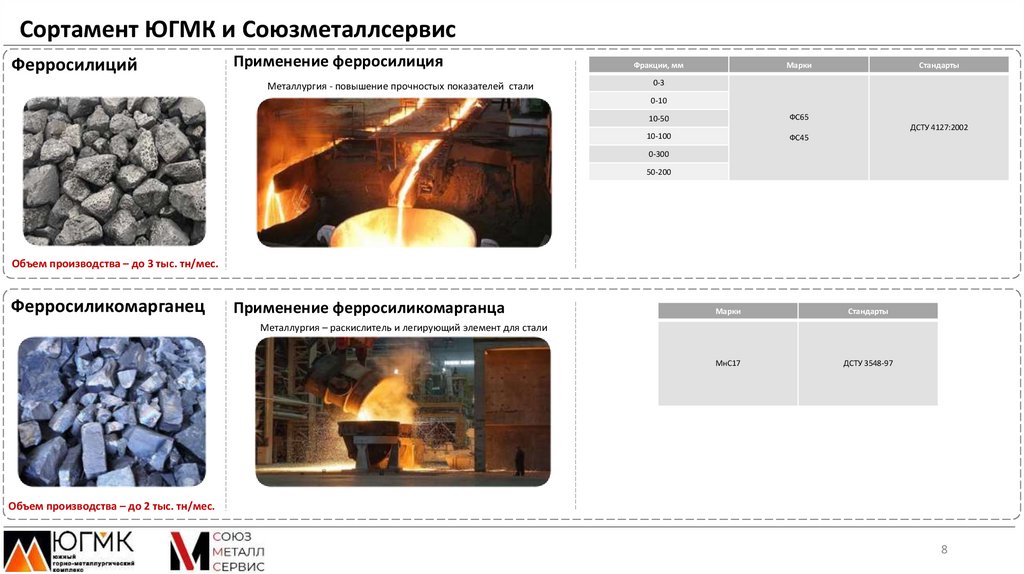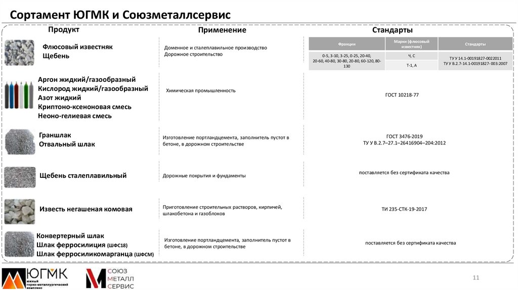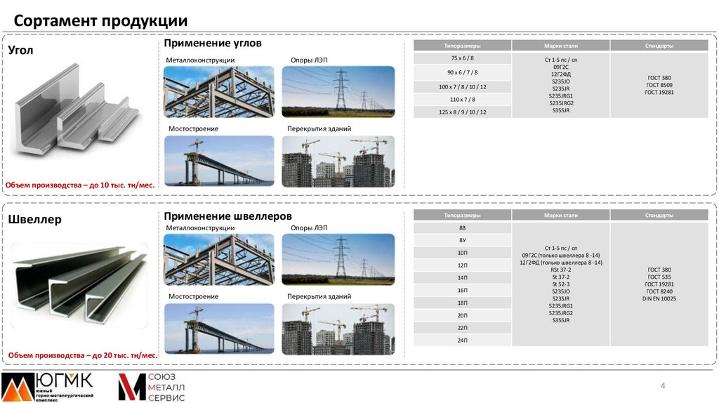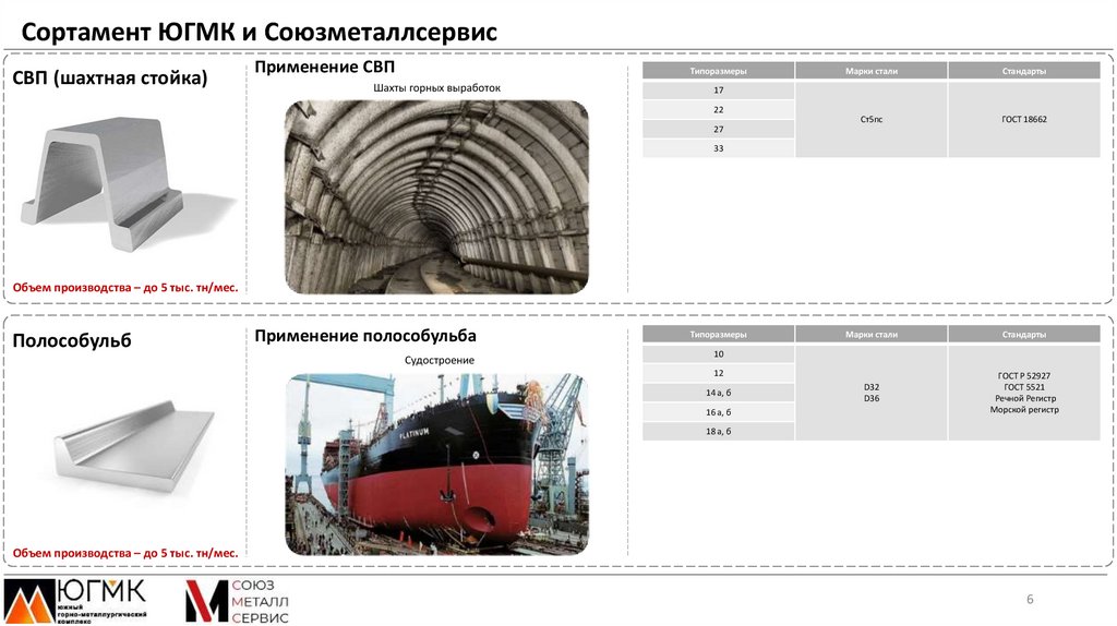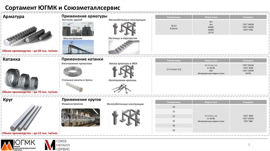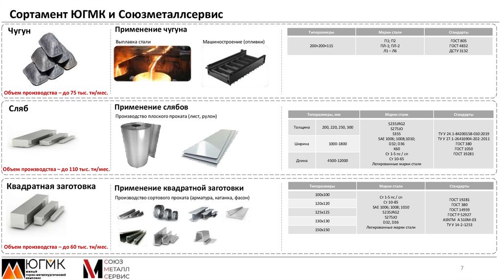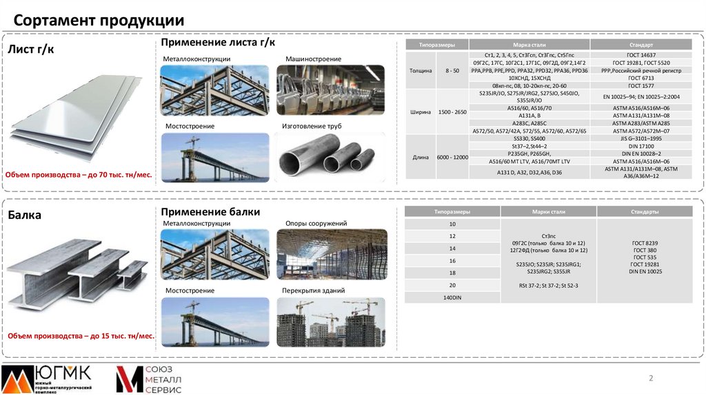 Сортамент ЮГМК и СоюзметаллсервисПродукт