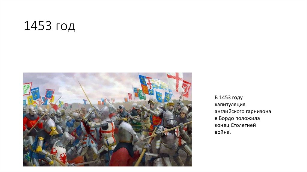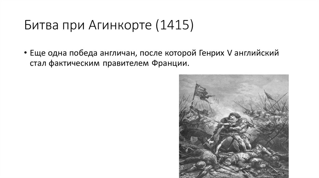 Битва при Азенкуре (1415)• Еще одна из побед англичан, которая привела к усилению их