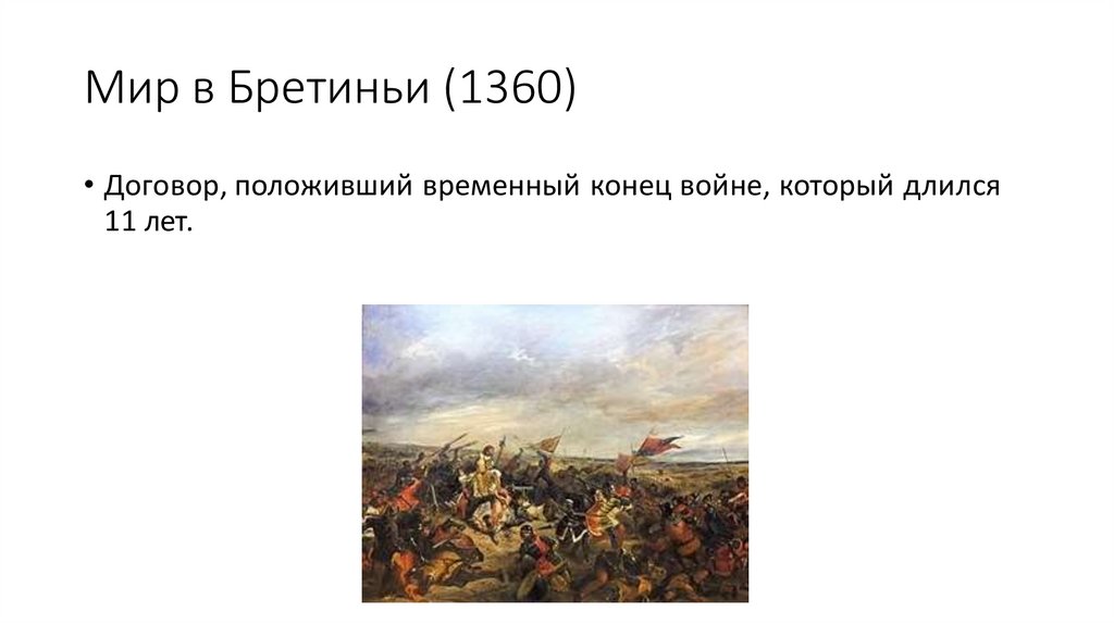 Мир в Бретиньи (1360)• Договор, положивший временный конец войне, который длился