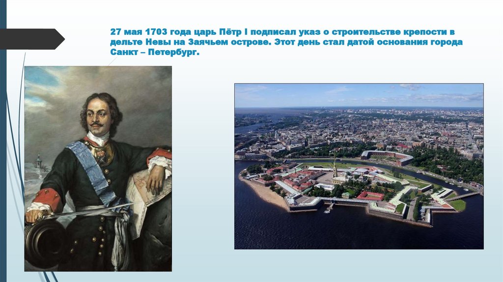27 мая 1703 года царь Пётр I подписал указ о строительстве крепости в