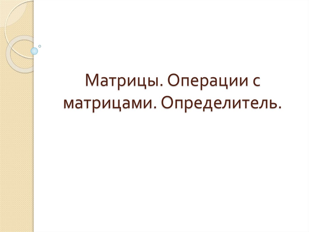 Матрицы. Операции сматрицами. Определитель.