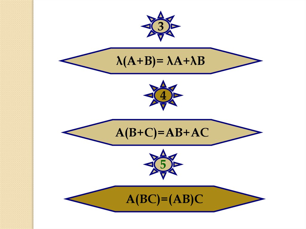 3λ(А+В)= λА+λВ