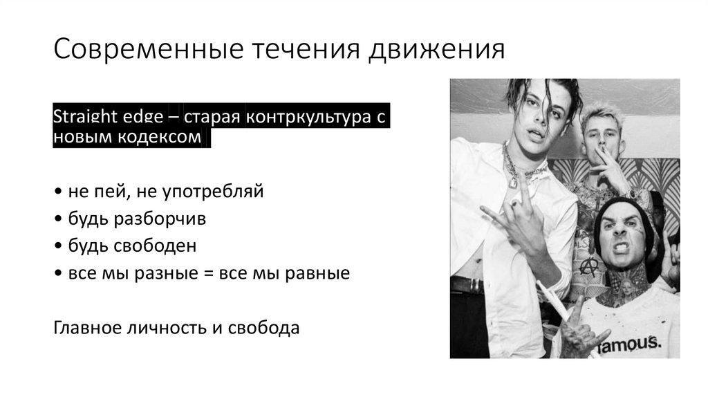 Современные течения движенияStraight edge – старая контркультура с