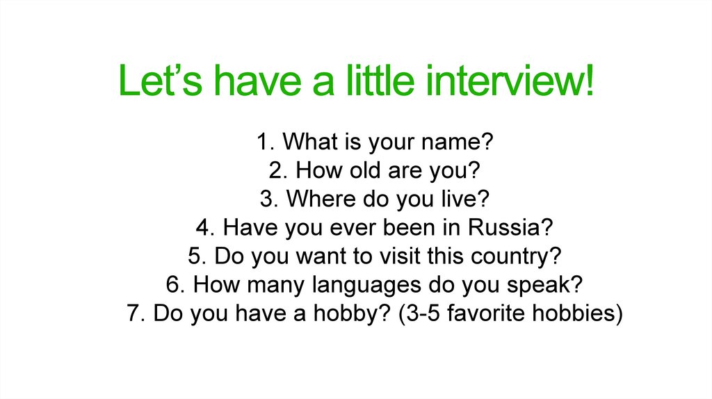 7. Do you have a hobby? (3-5 favorite hobbies)