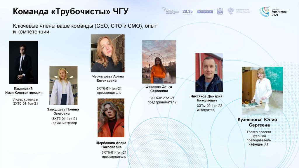 Команда «Трубочисты» ЧГУКлючевые члены ваше команды (CEO, CTO и СMO), опыт