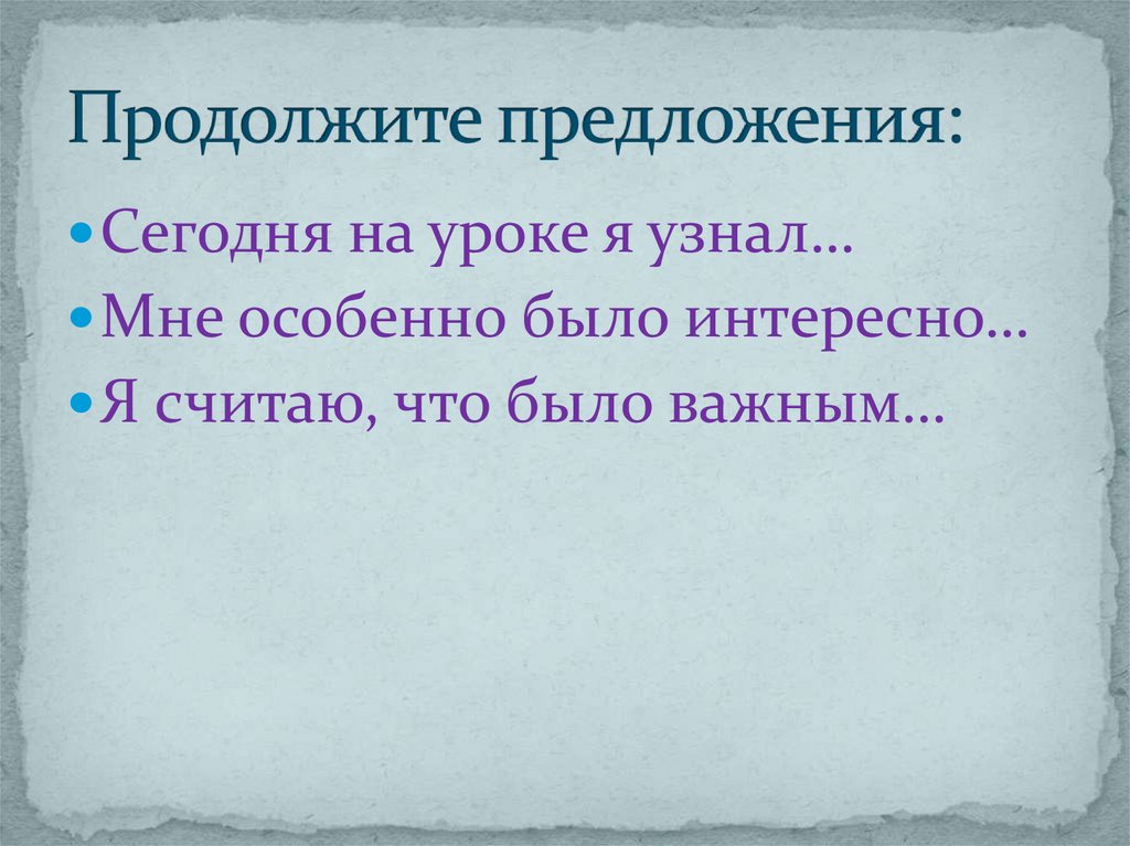 Сегодня на уроке я узнал…Мне особенно было интересно…