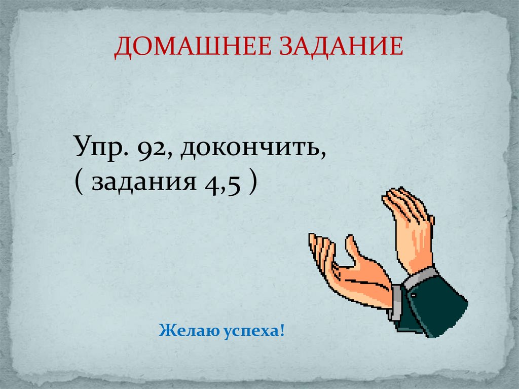 ДОМАШНЕЕ ЗАДАНИЕУпр. 92, докончить,