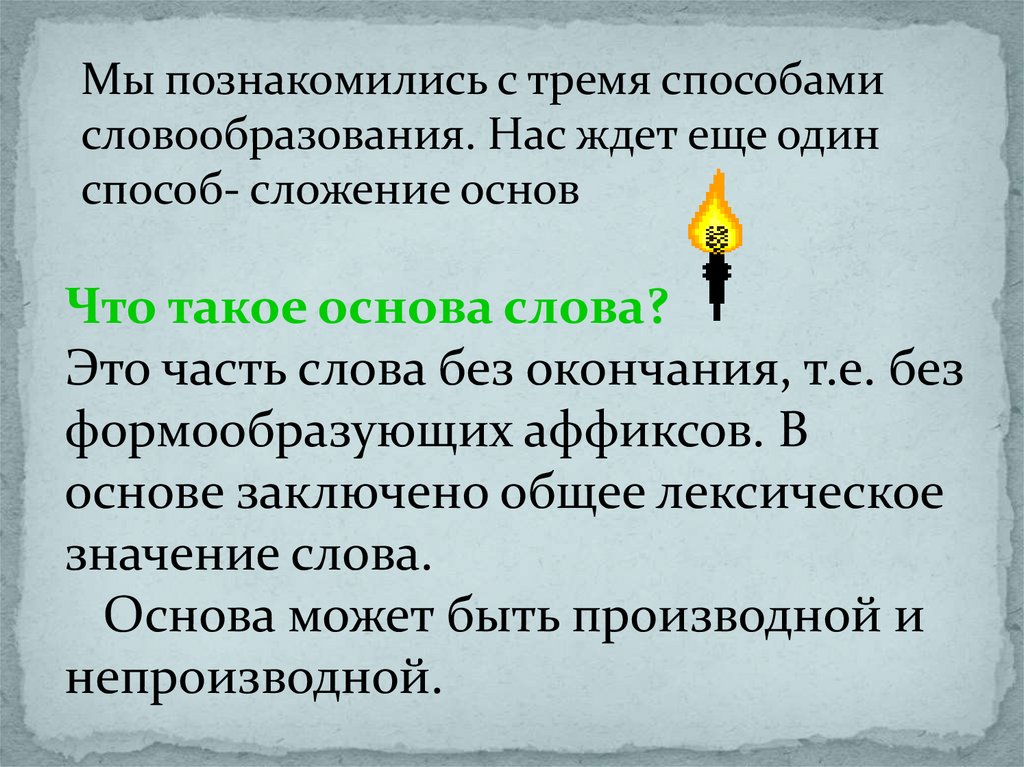 Мы познакомились с тремя способамисловообразования. Нас ждет еще один
