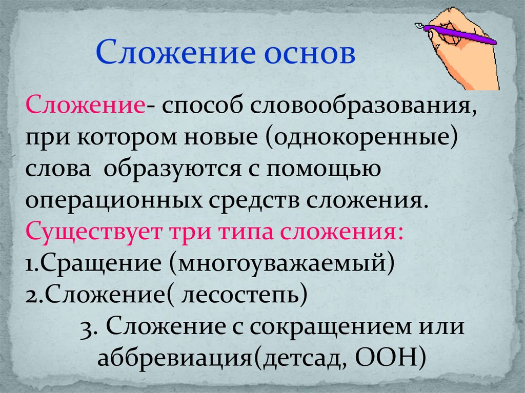 Три способа словообразования. Сложение основ
