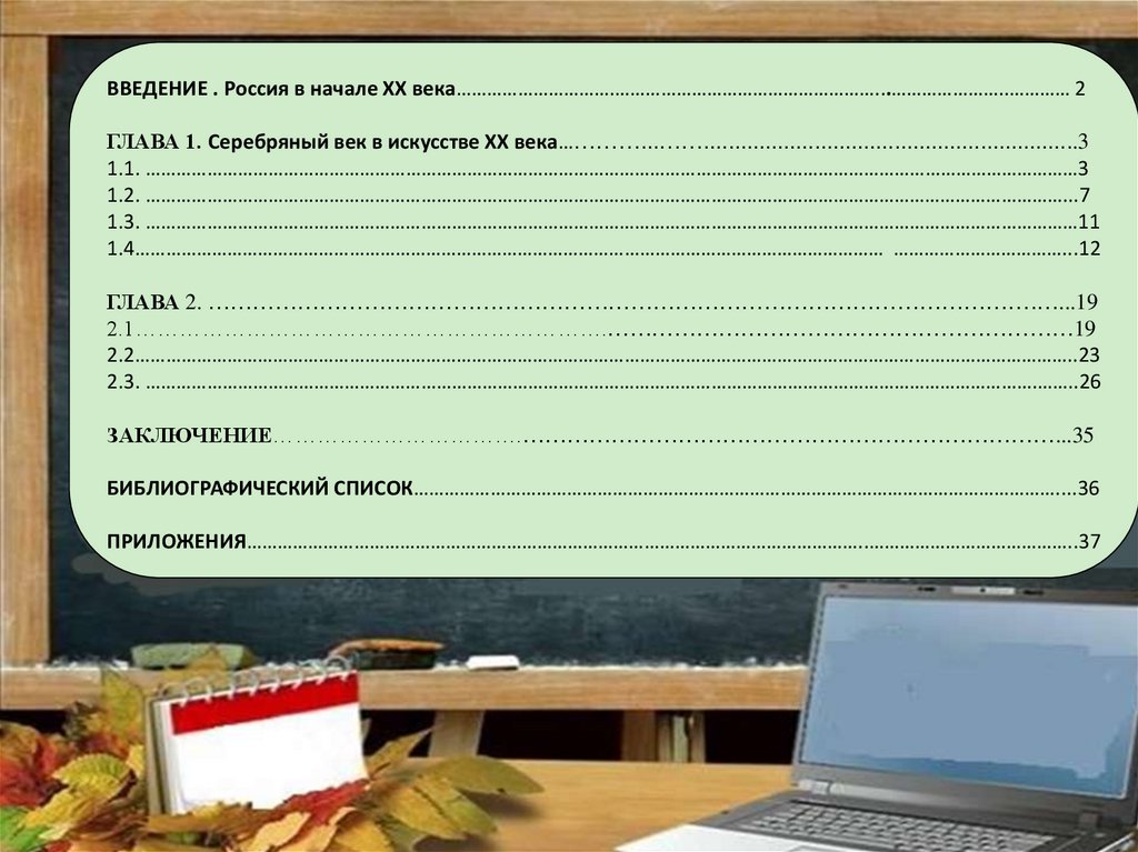 ВВЕДЕНИЕ . Россия в начале ХХ века………………………….……………………………………………...…………………..………… 2ГЛАВА 1. Серебряный век в искусстве ХХ века…………...…….............................................................3