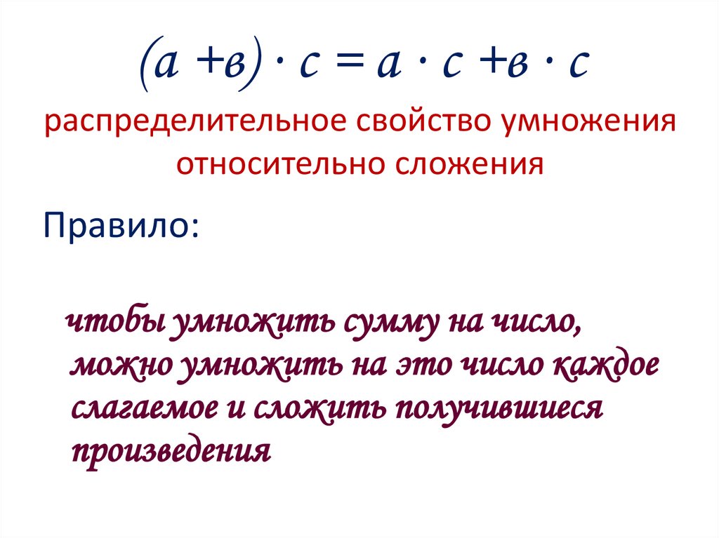 (а +в) ∙ с = а ∙ с +в ∙ сраспределительное свойство умножения